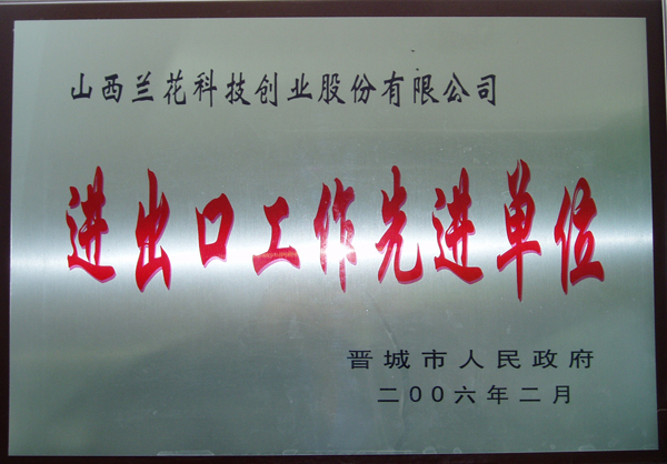 2006年2月,蘭花科創(chuàng)被市政府評為進出口工作先進單位