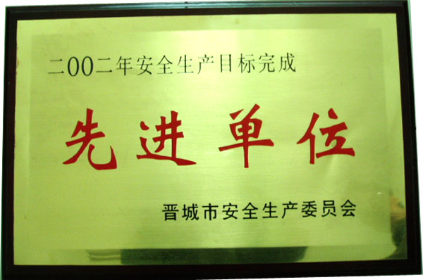 2002年度榮獲市安全生產(chǎn)委員會頒發(fā)的煤炭安全生產(chǎn)目標(biāo)完成先進(jìn)單位