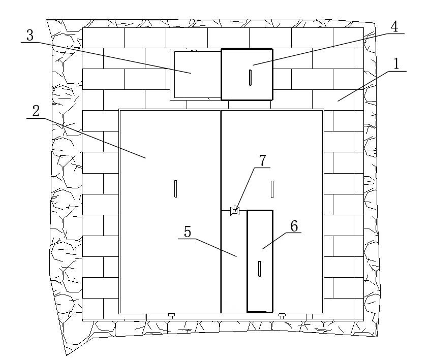 圖中:1-墻體、2-風(fēng)門、3-調(diào)風(fēng)窗、4-第一窗門、5-運(yùn)料窗、6-第二窗門、7-定滑輪。