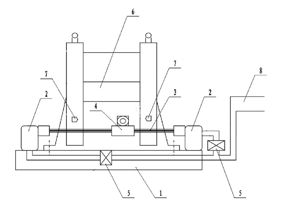 圖中,1-絞車底座,2-風泵,3-絲杠,4-排繩夾,5-電磁閥,6-絞車滾筒,7-限位器,8-總風管。