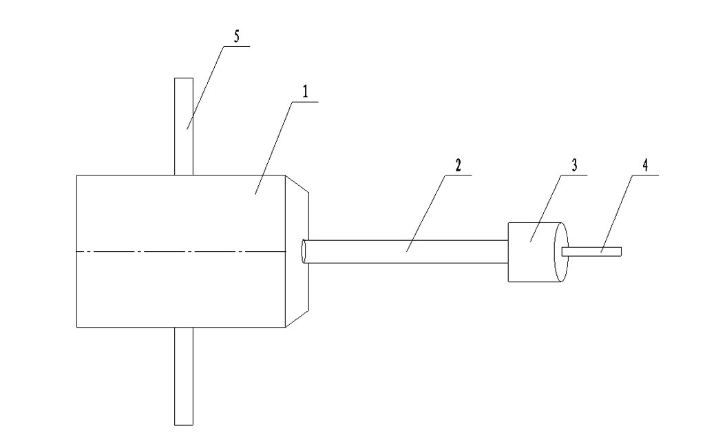 圖中,1-風(fēng)動(dòng)鉆機(jī),2-連桿,3-鉆帽,4-鉆頭,5-把手。