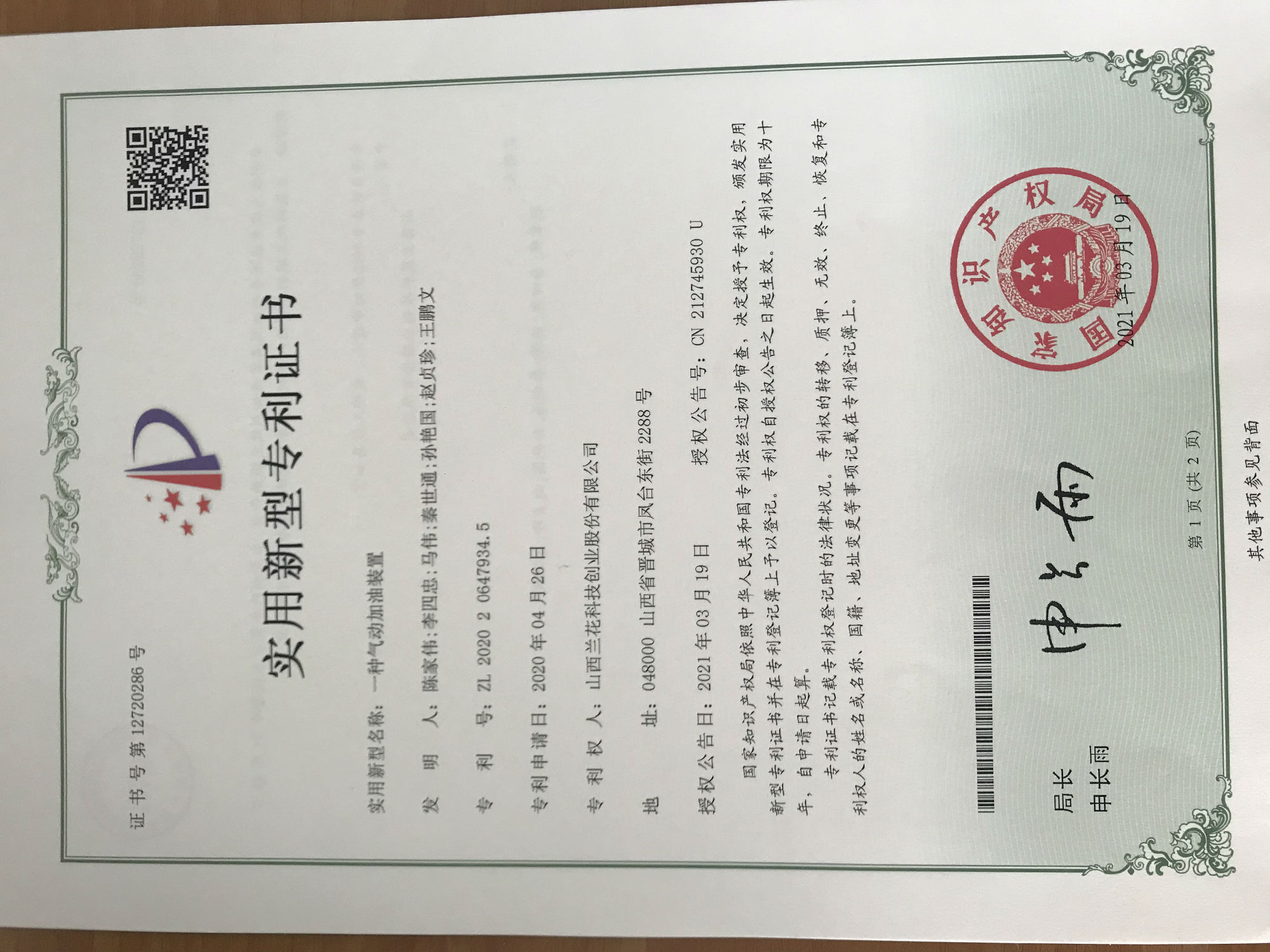 定稿-一種氣動(dòng)加油裝置.docx