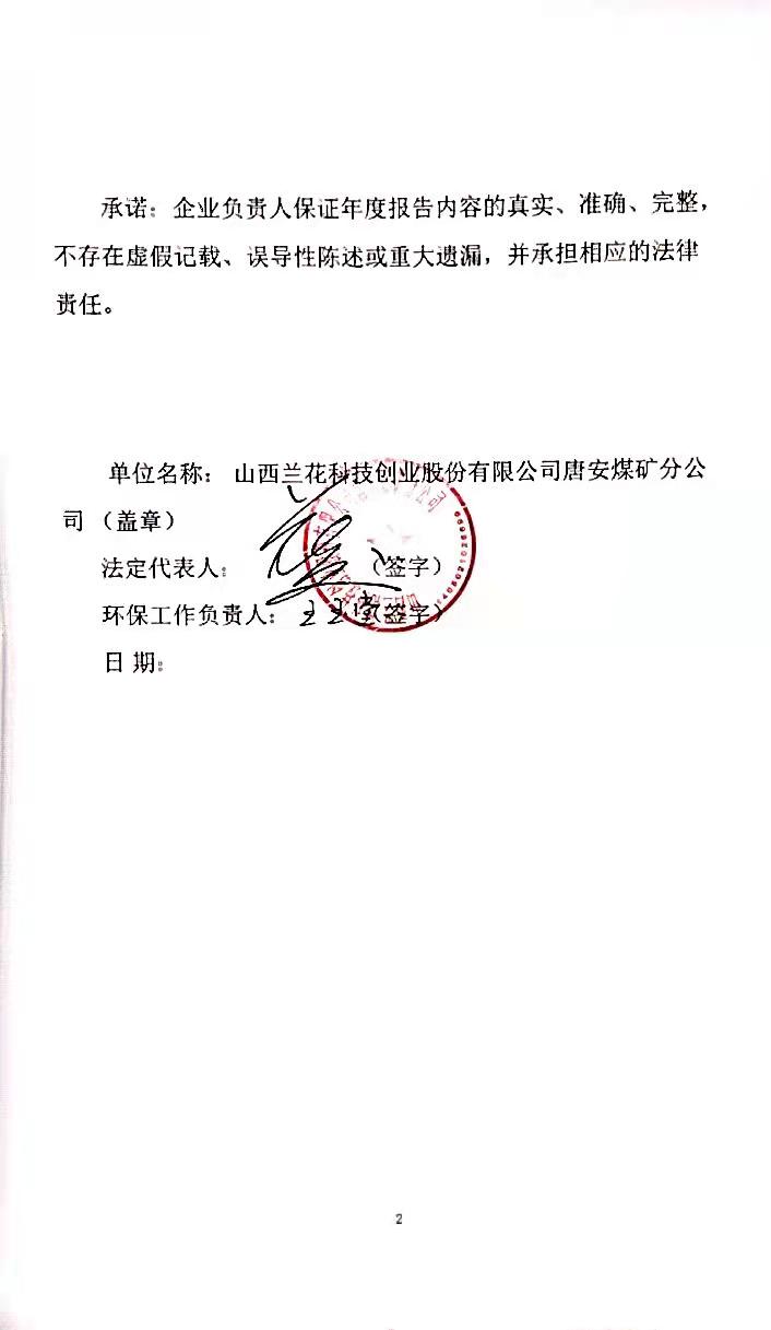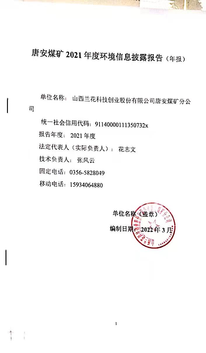 唐安煤礦分公司2021年度環(huán)境信息披露報告