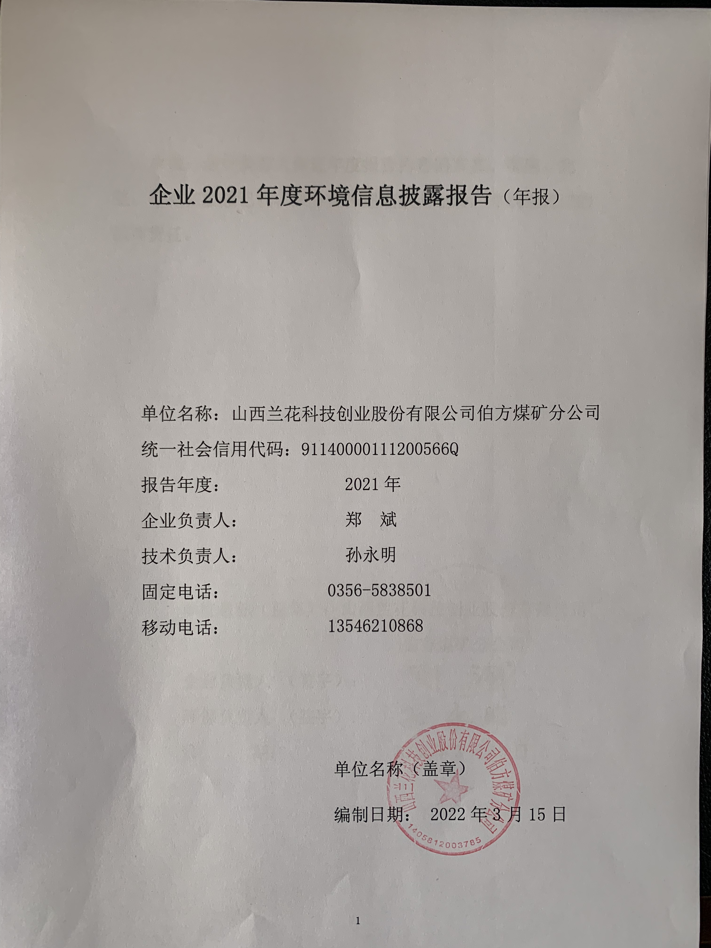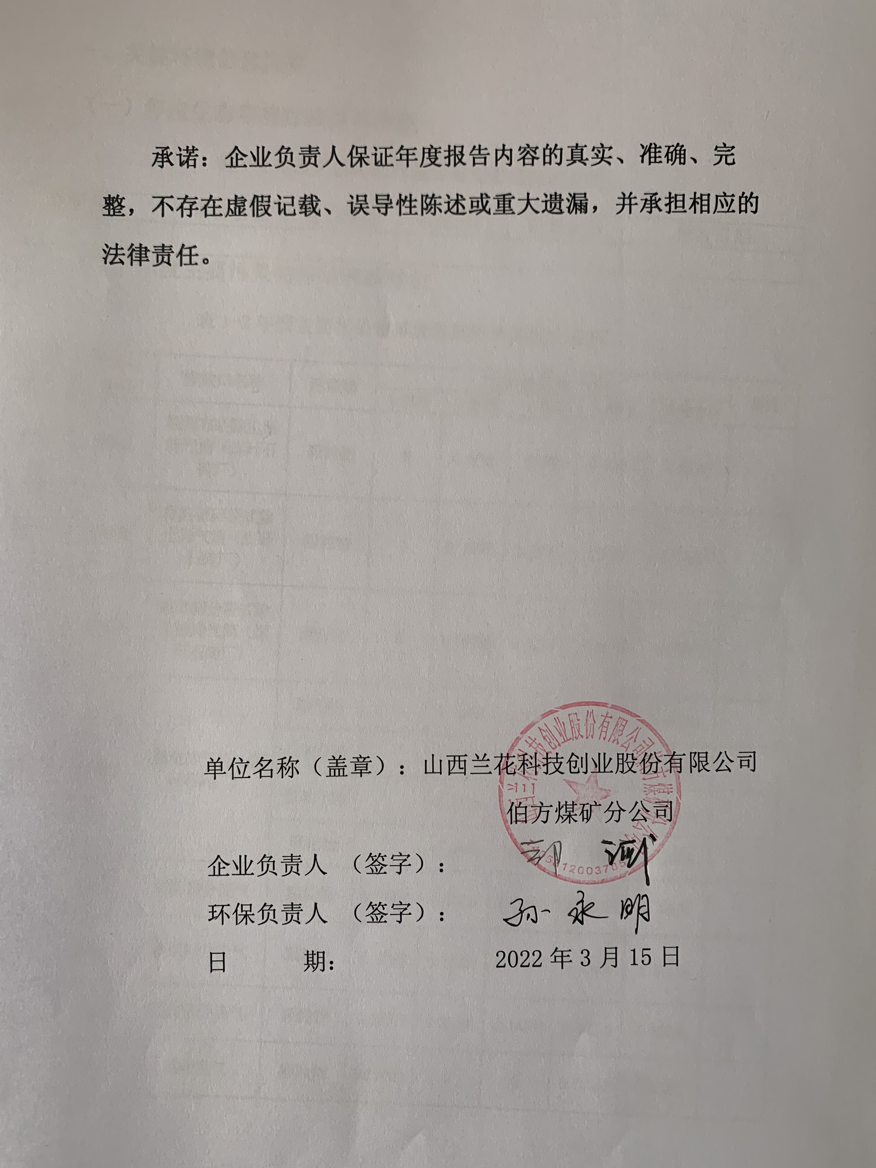 伯方煤礦分公司2021年度環(huán)境信息披露報告