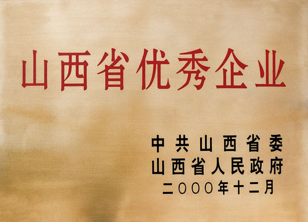 2000年12月,榮獲省委、省政府頒發(fā)的山西省優(yōu)秀企業(yè)稱號