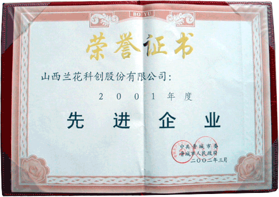 2002年3月,榮獲市委、市政府頒發(fā)的2001年度先進企業(yè)