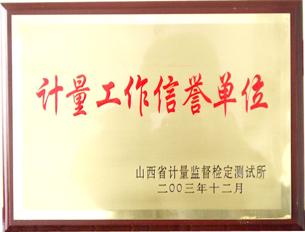2003年12月,榮獲計(jì)量工作信譽(yù)單位