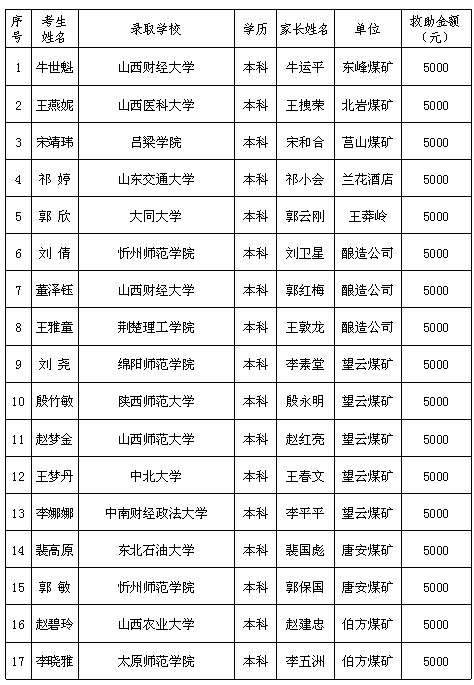 蘭花集團2013年“金秋助學(xué)”活動資助名單