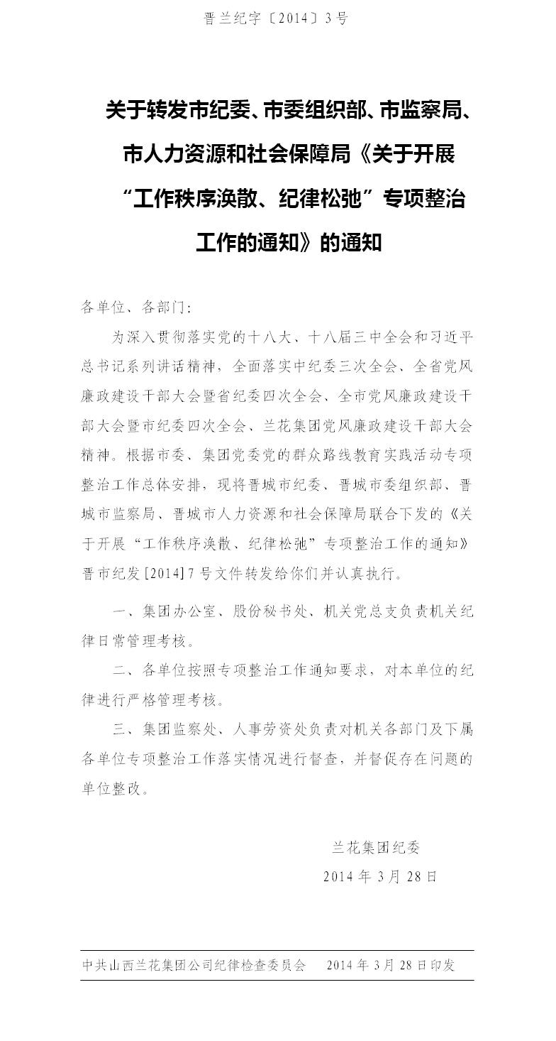 關(guān)于轉(zhuǎn)發(fā)市紀委《關(guān)于開展“工作秩序渙散、紀律松弛”專項整治工作的通知》的通知