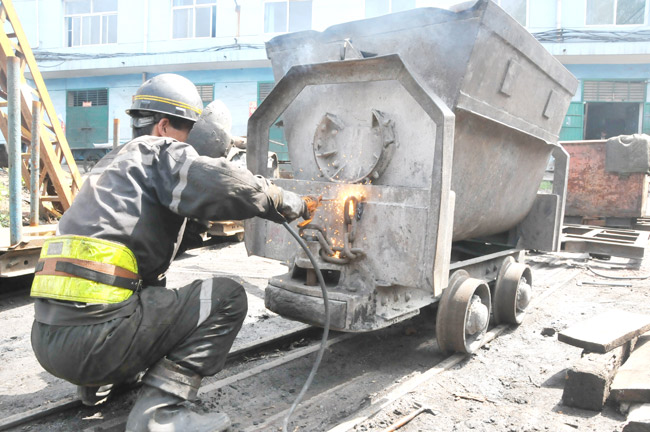 本網(wǎng)訊 今年以來,莒山礦以“制度約束、指標(biāo)分解、嚴(yán)格考核、獎(jiǎng)懲到位”的四位一體方式強(qiáng)力推進(jìn)節(jié)能降耗管理,調(diào)動(dòng)了職工工作積極性。圖為該礦電機(jī)車隊(duì)對廢舊礦車進(jìn)行維修復(fù)用。(張建新)